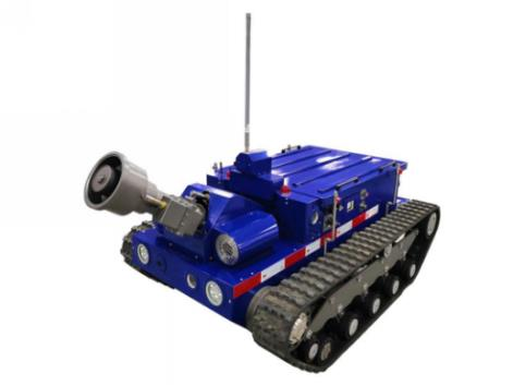 防爆消防灭火侦察机器人具有无线遥控、侦检、灭火、自身喷淋冷却、图像采集与数据传输、防爆、防水、防倾覆、越障、涉水、前进、后退、转弯等作业,可代替消防救援人员进入易燃易爆、有毒、浓烟等危险灾害事故现场进行探测、搜救、灭火、采集传输数据信息的功能。