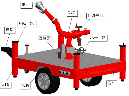 6. 该消防炮可安装于拖车、消防车以及作为固定炮使用。